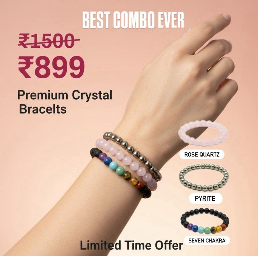 The Love & Success Crystal Combo Bracelet Set is a thoughtfully curated combination of Rose Quartz Seven Chakra Bracelet and Pyrite Bracelet, designed to bring emotional healing, inner balance, confidence, and abundance into your life. Each crystal in this combo carries its own powerful energy, working together to support overall well-being and personal growth.